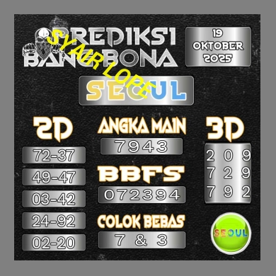 SYAIR PREDIKSI KELUARAN Seoul, 19-Oct-2025
